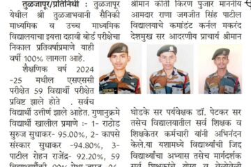 H.S.C Result 2022 श्री.तुळजाभवानी सैनिकी विद्यालयाचा 12 वी चा निकाल 100 %